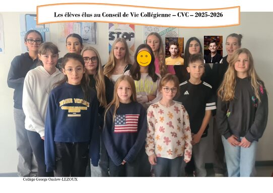 Vous trouverez ci-dessous la nouvelle équipe d’élèves élus qui siègeront au CVC cette année et auront pour mission de proposer des projets, des actions et des animations pour améliorer la vie au collège.